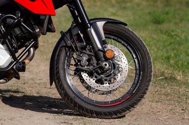 A V-Stromon állíthatod a gázreakciókat három állásban (SDMS - Drive Mode Selector), kapcsolhatod a kipörgésgátlót három plussz OFF-ba, valamint az ABS-t 1-be vagy 2-be, és kész. Bár a Suzuki elektronikai arzenáljának a felsorolásához elég egy poháralátét, a lemaradása legfeljebb egy fél generáció (műszerfalban pedig inkább kettő), ugyanúgy egy hattengelyű elmozdulásérzékelős giroszkóp (az úgynevezett IMU) szogláltatja hozzá az információt, mint a Hondánál – és mind a kettő jól működik, egészen addig észrevétlenek, míg nincs baj, vészhelyzetben aztán előugrik a kanyar ABS, jó esetben megment, kevésbé szerencsés forgatókönyv mellett pedig minimalizálja a kárt. Fékben egyébként a Suzuki jobb, bár mindkettő 310-es első tárcsákkal és radiálisan rögzített négydugattyús nyergekkel rendelkezik, a V-Strom lassításnál egyszerűen belefúrja az első kerekét az aszfaltba, harapósabban fog és ékesszólóbban adja a visszajelzéseket - a blokk mellett ez a másik legerősebb érv mellette.