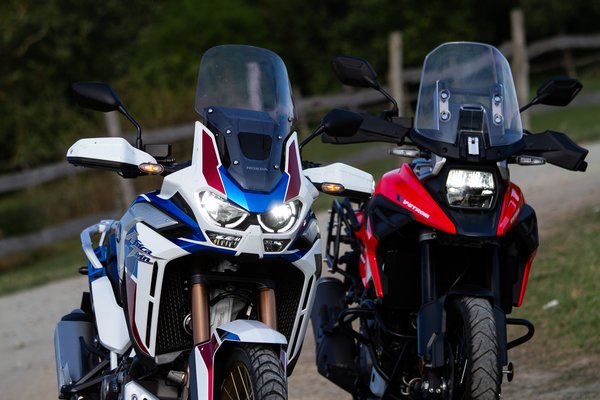 A V-Strom egy kiváló, sokoldalú motor, de a gyors, élményközpontú numerákon túl eszköztelen az Africa Twinnel szemben, melynek a jóságait akkor értékeli legtöbbre az ember, amikor már tíz órája motoron ül. Vagy amikor terepre téved, mert ott a V-Strom csak az utcai motorokhoz képest jó. A Honda hiába nagy batár, a magasan lévő kormánnyal és a nagy kerekekkel sokkal otthonosabb az aszfaltról letérve, felállva egyből érezni, hogy valóban foglalkoztak azzal, hogy úgy is kényelmes és jól irányítható legyen, és a dedikált offroad módokkal sokkal inkább alkalmasabb a terepjárásra. A Suzuki a kisebb kerekével, az utcaibb profilú gumijaival, a feszes futóművével esetlenebbül mozog a földutakon, az üléshelyzet (álláshelyzet?) sem az igazi ahhoz, hogy a bizonytalanságát testből kontrolláljuk, és ha ez nem lenne elég, a kikapcsolhatatlan ABS-ével teljesen el is veszi a kedvem az ilyesmitől. A Honda offroad képességei már-már a KTM-ekhez mérhető, miközben kényelemben, extrákban és presztízsben a BMW GS-sel is felveszi a versenyt.