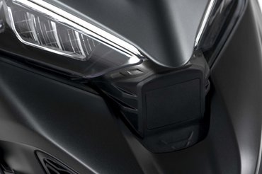 Mint már említettem, az elektronika fullos, IMU-val támogatott kanyar ABS, kipörgésgátló, wheelie control, hill hold control, kanyarfény és opcionális guminyomásszenzor egyaránt van. Ami viszont máshol még nem volt, az az első és hátsó radar, amelyek támogatják az adaptív tempomatot és a holttérfigyelőt - ezek egyébként a V4 S-hez lesznek csak rendelhetők.