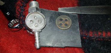 Nekiállhattam volna valahonnan parafatömböt szerezni, furkálni, vagdalni, de volt a Miki által adott készletben egy klasszikus, fix füles, elforgatós típusú, háború utáni, másféle csap is. Ahhoz gyártottam olló, lyukasztó és gumilap segítségével új tömítőbetétet, kipucoltam az egészet, s előállt a jó csap. Valahol muszáj engedni, s inkább én tegyem azt az eredetiségből, mint a csap a benzinnel. Ez is kis tétel, és ahogy a neten levő más NSU 251 OSL-eket nézem, azokon is többnyire már ilyen csap van.