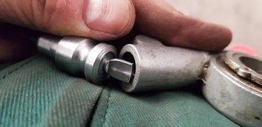 Ha már így alakult, hogy felszerelhetővé vált, a szerkezetből kitakarítottam a gumis rittyót, ami 1948-ban még talán elment zsírnak, majd friss kenőanyaggal összeraktam az egészet. A Veigel sebességmérő órához vett NSU-bovdenvég azonban nem stimmelt a kihajtáshoz, szerencsére szélesebb és vaskosabb volt a nyelv. Anyagot leszedni mindig könnyebb, mint rátenni – fél órát bíbelődtem a köszörűvel, meglett, nem volt vészes. Ez nem.