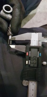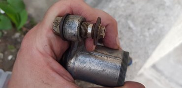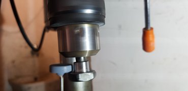 Sóhajtottam, megnéztem a pénzes zacskó alját, aztán jobb híján vettem egy ilyen új sztendert, mert ez legalább korrekt tervezés. Két nap, megjött, persze nem volt jó bele a másikhoz gyártott, Fűrész Feri bácsi-féle két, galléros csavar. Szerencsére azokat az eredeti, már kitágult lyukú, régi sztenderhez készíttettem, ezt az újat pedig a gyári méretre készítette valaki, tehát kisebb volt a lyuk, csak le kellett szedni a csavarból. A százéves esztergámat még nem sikerült megcsinálnom (vizet kapott a sín és rozsdás lett, a tokmány kúpos bronzcsapágya meg lötyög, még ki kell találnom, mit csinálok vele), ezért a 12 ezer forintos állványos fúrómmal és a kézi dremelemmel állítottam össze egy módfelett pontatlan, de a célnak épp megfelelő eszterga-köszörűrendszert, s lehúztam kisebbre a csavarok gallérjait. Azért elég pontosak lettek, lehet utánamérni...
