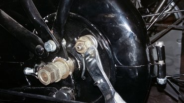Itt vagy a tengelyt és a sztendert tartó lemez formája nem stimmel, vagy a vázcsövek lettek hosszabbak a kelleténél. Abból, amennyit a sztenderen kellett faragnom, itt mindenre gyanakodtam, amit csak láttam. Oké, akkor rossz, ezt el kell fogadni, a nyavalygás nem vezet sehova, inkább találjuk ki, merre lehet elindulni.