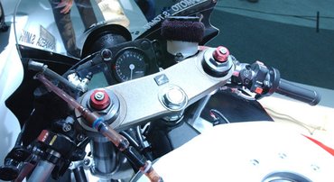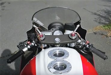 A lábtartók hátrább és magasabbra költöztek, a gyári csőkormányt is dobták, a helyére pedig mélyen a villahíd alá engedett csutkákat raktak. Minden porcikájában rendes versenymotort faragtak belőle, a bal kézhez kivezetett fékkar-állítóval, a fordulatszámot a középpontba helyező műszerfallal, radiális Brembo főfékhengerrel, legdrótozott markolatokkkal.
