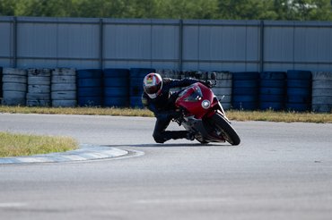 Bár a mechanika gyakorlatilag azonos az F3-mal, az elektronika némileg modernebbnek tűnik annál. A Superveloce már ötcollos színes műszerfalat kapott, ezen sokkal átláthatóbban lehet szabályozni a vezetési segédleteket. Nyolcfokozatú kipörgésgátló, négy menetmód: sport, race, rain és custom. De mivel az IMU-t kihagyták belőle, egyik okosság sem dőlésszög-érzékeny. Én a gázreakciót sportban hagytam, némileg gyengébbre vettem a traction controlt, és a blokkolásgátlót is deaktiváltam a hátsó keréken, majd nyeleztem boldogan!