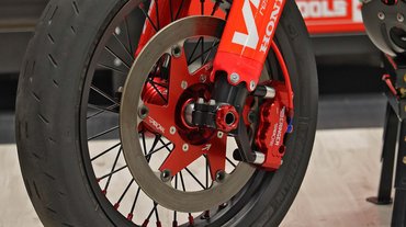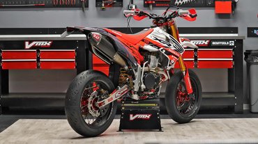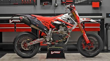 Supermotót itthon is építettek belőle többen is, de a VMX-féle XR azért egy másik liga. Elölre Beringer fékeket tettek öntöttvas tárcsával, KYB villák kerültek a gyáriak helyére, hátra pedig egy Öhlins gátlót dobtak. A kipufogó egy öszvér, az eleje FMF, a végdob pedig Yoshimura.