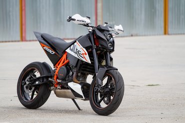 A kilencvenes évek elején Franciaországában olyan méreteket öltött az utcai huliganizmus, hogy az előtte csak szigorúan terepmotorokat gyártó KTM-nél piaci rést láttak a jelenségben. Ezek a violens magatartású fiatalok mindenféle japán endurókba kendácsoltak utcai méretű kerekeket, hogy aztán tapadással felvértezve terrorizálják közvetlen lakókörnyezetüket és a szerpentineken térdelgető sportmotorosokat. A 94-ben piacra került 620-as Duke volt az osztrákok első utcai modellje, és gyakorlatilag az első készen megvásárolható szupermotó. Vagány tulajdonosa a rázós egyhengerest csak berúgó karral tudta életre kelteni, hogy utána 17-es fűzött kerekeket minél tovább levegőben tartva szelje át a várost. Négy év után, az önindítós 640-es blokk megjelenésével kettévált az utcai széria – a klasszikus Supermoto megmaradt a fűzött kerekeknél a hosszú rugóútnál, a kettes Duke pedig az öntött felnik és a feszesebb futómű mellé letaglózó formavilágot is kapott. A kihegyezett egyhengeres technika minden előnyével és hátrányával.