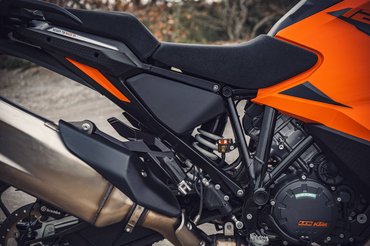 Egy új segédváznak köszönhetően alacsonyabb lett az ülésmagasság, ha nem is sokkal. Így most alapból 85 centiméter, de majdnem 87-ig emelhető, ha mégis úgy lenne a testalkatunknak megfelelőbb. Állíthatóak a kezelőszervek és a szélvédő is – utóbbit szélcsatornában finomították. Az osztott első fényszóróhoz is hozzányúltak, méghozzá azért, hogy még több jóságot csempésszenek bele. Itt kaptak ugyanis helyet a Bosch radarszenzorok, amelyek az adaptív tempomatnak szolgáltatnak adatokat, tehát a Super Adventure immár önmagától is képes tartani a megfelelő követési távolságot utazás közben.