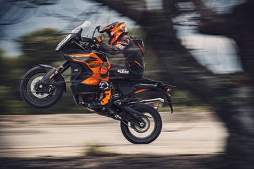 Mellette természetesen még egy sor segédlet áll a motoros rendelkezésére. Ilyen a dőlésszög-érzékelős kipörgésgátló, a kanyar- és offroad-ABS, valamint az offroad-kipörgésgátló. Alapfelszereltségként járnak a választható menetprogramok és az automatikusan kikapcsoló irányjelző. Feláras extrafelszerelés ellenben például a visszagurulás-gátló, valamint a gyorsváltó. A félaktív WP Apex futóművet hattengelyes IMU látja el adatokkal, a Suspension Pro csomag pedig még több beállítási lehetőséget kínál. A megállást elöl két 320 milliméteres, hátul egy 267-es Brembo tárcsa segíti, elöl négy-, hátul kétdugattyús nyereggel.