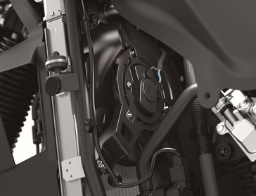 Ami a külsőt illeti, a 221 kilós menetkész tömegű gép pont úgy néz ki, mint amit nyugodt szívvel vinnénk terepre is. Kapunk gyári haspáncélt, kézvédőket, és egészen magasra emelték az irányjelzőket is. A rugóút elöl 20, hátul 18,5 centiméter.