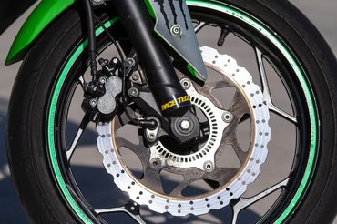 A kisebb pályákon viszont sokkal élvezetesebb kismotorral gyorsan menni, mint egy nagymotorral félgázon vitorlázgatni. A kis Kawát nyugodtan széjjel lehet forgatni, még ha elsőre úgy tűnik, hogy nem annyira szívleli a magasabb fordulatot. Természetesen ez megköveteli az állandó váltószteppelést, de ez inkább csak növeli az élvezeti értéket – a váltó olyan pontosan és könnyen veszi a fokozatokat, ahogy az a japán mechanikai nagy könyvben meg van írva. A szükséges módosításokkal együtt nagyon élvezetes ki pályaszerszám a háromkilós Ninja, egyedül a féken érezni, hogy itt bizony többre lenne szükség.