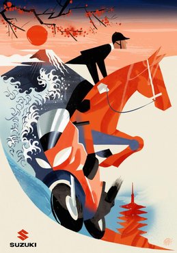 Felkértek ugyanis négy neves olasz illusztrátort, hogy készítsenek egy-egy plakátot, méghozzá az ARThletes: Burgman 400 and the modern Pentathlon (Artléták: a Burgman 400 és a modern pentatlon) nevet viselő program szellemében. A pentatlont ma leginkább öttusának fordítanánk, de az ókori olimpiákhoz visszakanyarodva is fontos szerepe van a fogalomnak. A pentatlon volt az első összetett megmérettetés a sportversenyek történetében.
