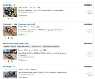Úgy tíz évvel ezelőtt még egész vállalható, de mindenképpen működő Simsonokat lehetett venni ötvenezer forint körül. Ma viszont már örülhetünk, ha 200-ért egyáltalán megmozdul egy S51-es. Szinte öldöklő versengés alakult ki az eladó példányokért, a legtöbb motor Németországban köt ki.