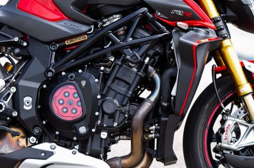 Talán a BMW S 1000 R százhatvan lóerejénél van az a határ, aminek egy csupasz motor esetében még van értelme. Bár az MV Agusta 208 lovára a Ducati Streetfighter V4 néhány lovacskával rálicitált, a számháborúnak ezen a szinten a használhatóság látja kárát. Ugyanis ezekhez a csillagászati értékekhez igen magas fordulatszámok és ezáltal hosszú áttételek járnak. A Honda tripla R-es CBR-je konkrétan gyengének tűnt még a középső tartományban is, és állítólag a V4-es Ducatik sem a nyomatékrugalmasság bajnokai. A hazai MV importőr azonban átlát az Euro-normák sűrű szitáján: a némileg rövidebb áttétellel szerelt tesztmotor már alapjáratról úgy tol, ahogy azt az ember egy több mint kétszáz lovas szörnyetegről elképzeli.