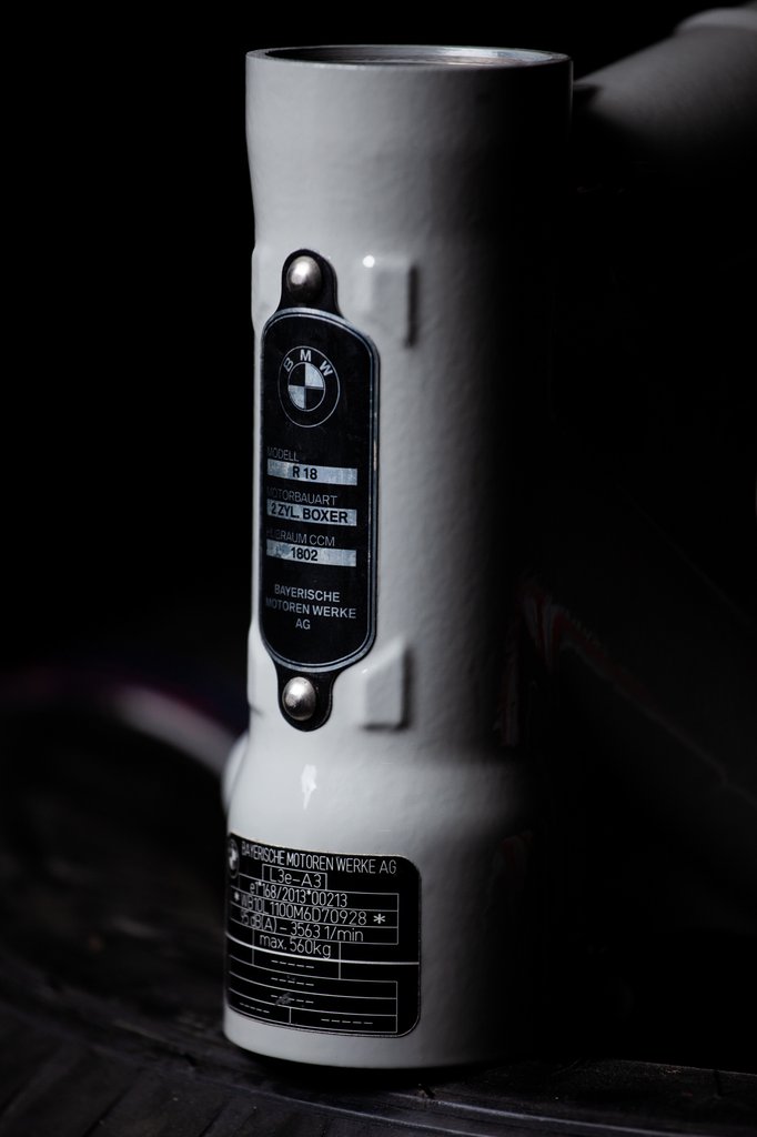 Persze közben sem unatkoztam, hanem kormányt gyártottam, egyetlen rúdból lett, három különböző vastagságban, közben hajlítottam, csiszoltam, dörzsikéztem, homokszóróztattam, majd megkapta a struktúr fektetét. Amikor ez kész lett, akkor szintereztük a sztendert, és a rendszámtáblatartót. A szinterezést egyébként Kati és Oszi barátom csinálta, akik végtelenül profik, és rengeteget segítenek nekem. Így a folyamat nem állt meg, az egyedi BMW-emblémát pedig még nem is láttad, ami a gyári feliratokból készült. Azokat szétvágtuk, egyetlen lapra helyeztük, ezért ez teljesen egyedi lett. Ebben Bielik Árpi műgyantás szakember barátom volt a segítségemre, akinek elképesztő kézügyessége van.