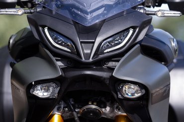 Nemrég a Yamaha MT fórumban valaki azt mondta a Tracerre, hogy ő ahhoz még nem elég öreg. Szívasd csak magad nyugodtan, gondoltam magamban – pláne, hogy a tag a csajával szeret túrázni. Nekem viszont egy csomó érvem van az új Tracer mellett - mégpedig a sima MT-09 ellenében. Az első, hogy nem fúj rajta a szél. A második, hogy sokkal kevésbé hasonlít egy lóharapásra. Általánosnak tekinthető vélemény, hogy az idei modellváltással a csupasz verzió megjelenésében nem az előnyére változott. Ellenben a 900 helyett csak 9-cel jelölt Tracer a hátuljától eltekintve kifejezetten pofásra sikerült. A szigorú menetfényekkel van egyfajta támadó ábrázata, sajnos a tompított viszont továbbra is csak egy oldalon világít. Ebben a matt katonai zöldben simán el lehetne sütni egy nem túl távoli jövőben játszódó sci-fiben is. Az én kedvencem ugyan a piros, de az sokak szerint nagyon BMW XR-es. Még jó, hogy van egy, csak a GT verzióhoz rendelhető kék-ezüst-fekete változat is.