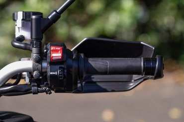 Viszont ezeknek a cuccoknak a megjelenítése, kezelése nem éppen egyértelmű – ebben még van mit fejleszteni. Bár először jópofának tűnik, hogy folyamatosan Johnny 5 (filmbéli robot) bámul a kormány mögül, de a két apró kijelző helyett sokkal jobb lenne egy nagy TFT-n turkálni a menüben. Pláne, hogy még a markolatfűtést is onnan kell kikeresni, a jobb oldalin pedig nagyrészt ugyanazokat az infókat lehet variálni, amit a bal oldalon is kiír. A módokra is jobb lenne egyértelmű szavakat használni számok helyett, nem pedig találgatni a számozott skálákat. A hátulról érkező erős napfényben pedig testi épséged érdekében jobb, ha a műszerfal helyett inkább az útra figyelsz. Ráadásul a jobb oldali markolaton lévő tekerős gomb is túl pici/érzékeny, gyakorlatot igényel a használata. A modellfrissítés előtt majd remélem megnéznek közelebbről egy BMW interfészt, és szereznek majd valamelyik beszállítótól kulcs nélküli indítást/tanksapkát is.