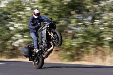 Ugyan huszonpár kilóval nehezebb a csupasznál, és hat centivel nagyobb a tengelytávja, mégis kifejezetten virgonc módon fordul. A 220 kilós telitankolt tömeg ne tévesszen meg senkit, ebből kb. hat-hét az oldaldobozoké.