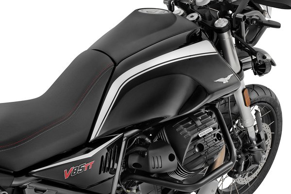A V85 TT Guardia D'Onore Editiont fekete egyenruhába öltöztették, óvatos fehér díszítéssel, a típusjelzést pedig pirossal dobták fel. Ezen kívül a szériaváltozatnál magasabb szélvédőt, középállványt és ledes kiegészítő világítást is kapott. A blokkot bukócső öleli körül.