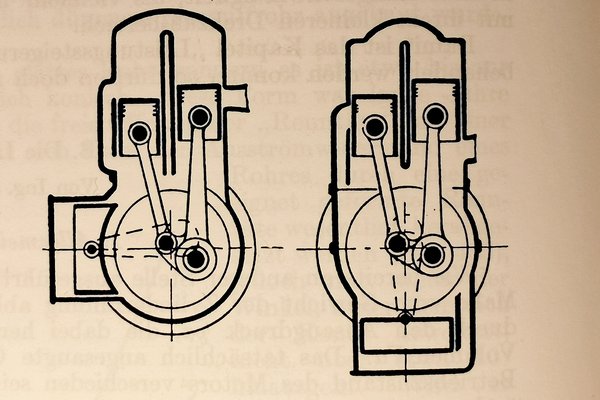A DKW 1923-ban, a kezdetek kezdetén, egy hengerrel párosította a kompresszort oly módon, hogy a rendes dugattyúhoz képest kétharmaddal nagyobb átmérőjű töltődugattyú - 180 fokos elékelése miatt - a dugattyúval ellentétesen mozgott. Így ha a dugattyú éppen felfelé tartott, akkor felette ugyanúgy sűrített, mint minden rendes kétütemű motor. Alatta szintén a megszokott módon a friss keverék ömlött a forgattyúsházba, csakhogy sokkal intenzívebben, mint a hagyományos kétüteműekben, mert a lefelé mozgó töltődugattyú is egyre csak növelte a szívóteret. Amikor viszont a gyújtást követően az égő gázok lefelé tolták a dugattyút, a töltődugattyú – vele ellentétesen – fölfelé indult. A hagyományos kétüteműekhez képest így nagyobb nyomásra sűrítette elő a beszívott keveréket, így amikor a dugattyú éle kinyitotta a felömlőt, a keverék intenzívebben tolult a hengerbe, egyfajta feltöltést megvalósítva.