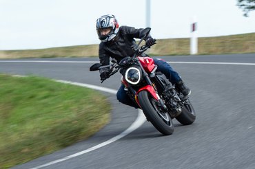 A frászt nem hozza rád, az IMU őrangyalként figyel, de egy kormány-lengéscsillapító nem lehet rossz ötlet. Ez a kezdeményező, közösülésre csábító attitűd hiányzott nekem az előzőekből. Eddig sem kellett vele birkózni, de ez búgva borul magától vízszintesbe, hanyatt, mindenhova, és közben az övedbe kapaszkodva ránt magával. Nem lehet neki nemet mondani. A fékekhez nem nyúltak, a Brembo M4.32-es, négydugattyús radiális nyergek az elődmodell mozgási energiájához is elegek voltak. Itt meg 18 kilóval kevesebb izzasztja őket, mi baj történhet?