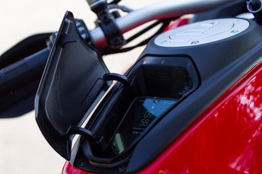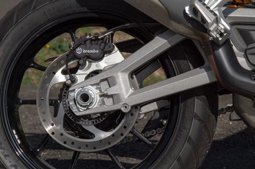 A fékeknél nagy változás nem történt, előre a már megszokott 320 mm átmérőjű tárcsák kerültek, amit a klasszikus négydugattyús Brembók karmolnak, hátul pedig a szintén klasszikusnak mondható 265 mm-es tárcsa a kétdugattyús kombinációval. A Brembo csúcstermékének tartott Stylema nyergek csak az S változatra kerültek, hogy akinek a legjobból a legtöbb kell, tudja, mire ad ki plusz egy millát. A két modell között még a TFT-kijelző mérete a különbség, az alapmodellen öt col jár, az S-re viszont már nagyobb, 6,5 colos kerül. Nem jönnék elő a tévé és a könyvespolc mérete között húzódó arányok boncolgatásával, nekem bőven elég volt ez, viszont az alapváltozat nem lép kapcsolatba az okostelefonnal, így menet közben a képernyő segítségével nem tudod például a navigációt áttükrözni. A kérdés persze az – természetesen a sok más extrával, félaktív futóművel, combosabb fékekkel, stb... kiegészítve – megér ez neked egymilliót pluszban?