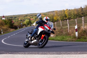 Külön tréningre lenne szükség, hogy eligazodjak a menürendszerben, mert barangolhatunk a motorozási módok, a traction control mértéke, az erőleadási módok, a wheelie control és az IMU-vezérelt kanyar-ABS között, de ezek tökéletes beállításához minden menet után telemetriásra lenne szükségünk, aki kiértékeli, mit vétettünk a Hegyestű és Szentbékkálla közötti szakaszon, és mi az, amin módosítanunk kellene, hogy ugyanitt fejlődjünk. Így, ha a sarokból kellene hozzászólnom, azt javasolnám, a középérték földi halandó számára nagyjából pont az, amivel biztonságban motorozni lehet. A legfontosabbak: mint a csúszókuplung, az ABS és a kipörgésgátló meg úgy is ott vannak, ha kell, ha nem. Bár inkább legyenek, hiszen nincs annál nyugodtabb érzés, mint amikor kanyar előtt ész nélkül rugdalod vissza a fokozatokat, és tudod, ha baj van, abból mit sem érzel, mert az alattad dühöngő intelligens bölény majd megoldja, és nem fog a kitörő fara árokba repíteni. Végeredményben egy ilyen elektronikai csomag leginkább saját magadtól véd meg.
