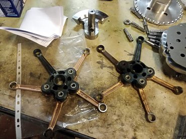 A csillagmotorok sajátos problémáját itt is meg kellett oldania valahogyan, röviden arról van szó, hogy a két főtengelyen egy-egy főhajtórúd és négy-négy mellékhajtórúd van, és ezek geometriája miatt minden hengernek kissé eltérő a lökete. Ezt Marek a hengertalptömítések mennyiségével/vastagságával játszotta ki, hogy a végén minden hengerben ugyanakkora legyen a kompresszió. Ebből lett a vicces sztori, amikor bement az alkatrészboltba: