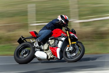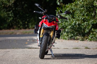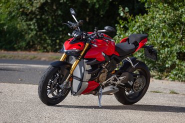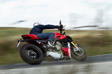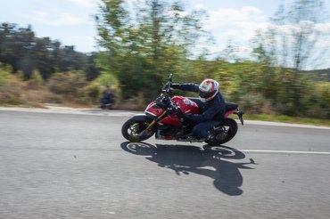 Ez a technológiai parádé köridőre hegyezett sportmotorok esetében biztosan tizedmásodpercekben kifejezhető előnyt jelent. De a versenysportban használt megoldások önmagukban még nem jelentenek garanciát egy igazán élvezetes utcai motor létrejöttéhez. Mert emlékeim szerint utcán menni a „csak” százötven lovas V2-es Panigaléval sem volt túl nagy élvezet. A radikális üléspozíció és a hosszúra áttételezett V2-es a feszes futóművel párosítva legfeljebb egy hosszú kanyarokkal megszórt tükörsima szerpentinen áll össze, és itthon nem sok ilyen útvonalat lehet találni. A Streetfighter azonban nem csak az egyenes kormány miatt alkalmasabb a közúti csapásmérésre. A lábtartókat is némileg lejjebb és előrébb helyezték, így már lazább testhelyzetből lehet az utcát támadni.