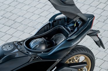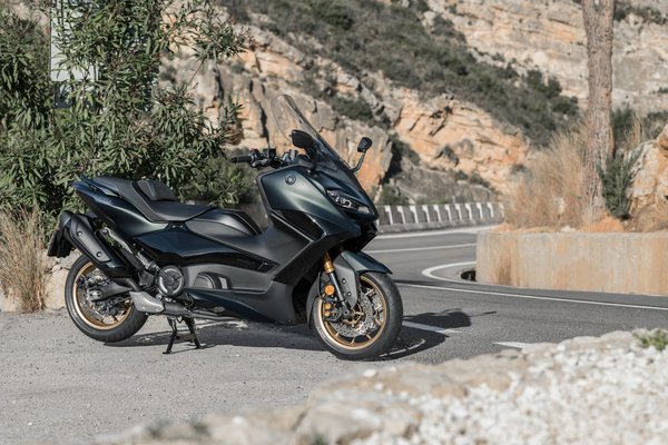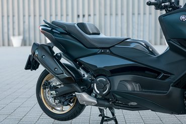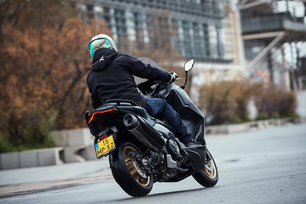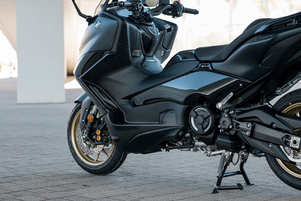 A Yamaha volt az első, akinek volt mersze szakítani a Vespa és a Lambretta által lefektetett robogóépítési elvvel, a TMAX blokkját nem a lengővillára építették, hanem a vázba - így csökkent a rugózatlan tömeg, merev lett a kaszni, egyből jó helyre került a tömegközéppont, és így már lehetett alá rendes futóművet és féket építeni. Azóta eltelt több mint 20 év, és elértünk a TMAX nyolcadik generációjához, amelynél az alaprecept továbbra is ugyanez.