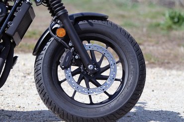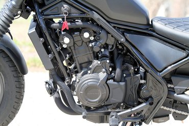 A Rebel 500-hoz nem kell korlátlan A kategória, akár A2-vel is rá lehet ülni, a blokk pedig a Honda CB-családjából már jól ismert 471 köbcentis, 46 lóerős, vízhűtéses sorkettes, amit a tapasztaltabb kollégák elmondása alapján abszolút nem ölt meg, hogy teljesíti az Euro 5-ös kibocsátási normát, eddig is jól ment, és most is jól megy. Ha ténylegesen haladni szeretnénk, elkerülhetetlen, hogy magas fordulatszámon pörgessük, a kipufogódob hangolása viszont elég mély tónusú lett, ami sokat segít ahhoz, hogy ne érezzük teljesen stílusidegennek a fordulatszámot a gép karakterétől.