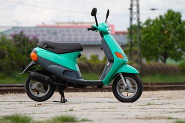 Benzinről üzemeltetve pontosan úgy viselkedik, mint egy Piaggio Zip 50, indul, pöfög, jön-megy - gyári állapotban nem repeszti meg a májat a gyorsulása, kellemes 50-55 km/h-s végsebességre képes a fekvőhengeres, levegős, kétütemű blokk - jobb beállítással többet is ki lehet belőle hozni. A kormány alatt lévő kapcsolót átbillentve viszont válthatunk a villanymotorra, amely egy fogasszíjjal hajt le direktben a hátsó szíjtárcsa és a kuplung tengelyére.