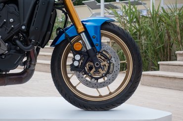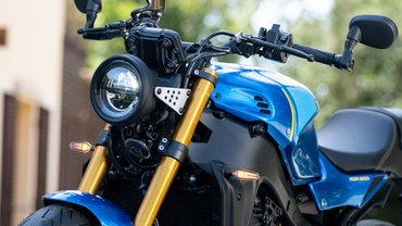 A Yamahanál Sports Heritage-ként aposztrofált kategória legújabb tagjánál is vannak kisebb formai anomáliák. A foteldizájnerek szerint az öntött alu hídváz eleve idegenül hat egy régi időket idéző motoron, azonban már a Deltabox konstrukció is elmúlt negyvenéves. Mellesleg az elődhöz képest ötven százalékkal nagyobb merevség mellett is két kilóval kevesebbet nyom a mérlegen. Viszont a klasszikus kerek led fényszóró továbbra is fura pozícióban helyezkedik el a TFT-műszerfal alatt. Azt azonban sikerült kihúzni a prezentációt előadó termékmenedzserből, hogy ez leginkább a törvényi előírásoknak köszönhető. Szóval, ha nem akarják a típust például Európában százharmincezer euróért új modellként homologizálni, kénytelenek az alap MT-09 műszaki paramétereinél maradni. Szerencsére az utángyártó ipar már az előző modellhez is kínált a gyárihoz hasonlóan ízléses alukonzolt, ami beljebb helyezi a fényszórót, és javít a fura arányokon.