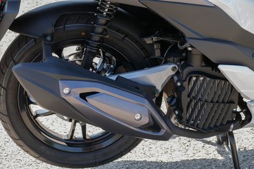 A SYM 125-ös blokkja vízhűtéses, ebből is az a kompakt fajta, ahol a kiegyenlítőtartályt és magát a hűtőt (ventilátorostól) ráépítik a blokkra. Egyszerű gyártani, és sokkal könnyebb, továbbá elvileg több hely marad másra. Ugyanilyen a PCX is, de annak van stop-start rendszere, vagyis megálláskor lelövi a motort, és csak akkor indítja újra, amikor a gázt meghúzza az ember. A SYM nem törte a fejét ilyesmin, mert úgymond az ő blokkjuk így is keveset fogyaszt.