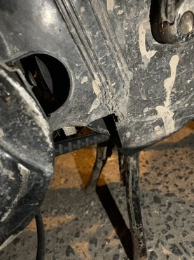 Néztem a letámasztott Malagutit, aminek a sztendere már eleve egy kicsit ferde volt, és meg is említettem, hogy mintha romlana az állási dőlésszög-helyzet. A következő pillanatban feldőlt a picsába. Kiderült, hogy bár valami betonnak tűnő felületen támasztottam le, az úgy meg volt lágyulva az irtózatos melegtől, hogy a sztender utat tört benne magának és belesüllyedt. Az anyagi kár nem volt jelentős, csak a tüköradapterem nyíródott el a tövénél, ahogy a tükör megnézte közelről a szalagkorlátot. Szerencsére a tükörnek nem lett baja, és a többi alkatrész is kibírta.