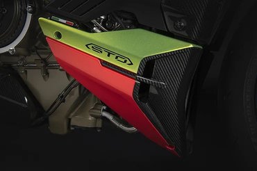 Különbséget jelentenek viszont egyebek mellett a Huracán STO kerekeit utánzó kovácsolt felnik, továbbá néhány szénszálas elem, például légbeömlők, amelyek ugyancsak a Lamborghinire rímelnek. A nyereg anyagát is a sportautó belsejéhez próbálták igazítani. Amúgy a 178 kilogrammos száraz tömeg nem változott.