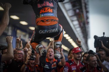 Dancing with the rain man all the way to the top step. 🕺☔️🎥 x @MotoGP pic.twitter.com/7XCPmBGaCc — Red Bull KTM Factory Racing (@KTM_Racing) October 3, 2022