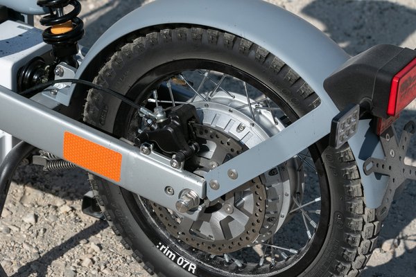 Fogasszíj-hajtás viszi át az erőt a középmotorról a hátsó kerékre, csendesen működik, és 151 Nm nyomaték jelenik meg a keréken. Folyamatosan 5,3 lóerőt ad le, maximális teljesítménye közel 7 lóerő, és elérhető A1-es jogosítvánnyal vezethető, 90 km/h feletti végsebességű változatban is – teljesen egyértelmű, hogy én ha ilyet vennék, még akkor is ezt a modellt választanám, ha nem lenne hozzá jogsim, és meg kell csinálnom hozzá a B125-öt.