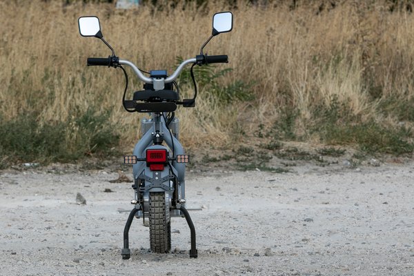 Engedjük előre a kisebbet. A Makka Flex messziről felismerhető, ránézésre félúton jár a bicikli és a robogó között. A nyereg, a nyeregmagasság állítása, a külső burkolatok hiánya, illetve a kormányszár és a kormány kialakítása egyértelműen a hagyományos kerékpárokra emlékeztet, viszont mivel nincs rajta sem lánc, sem pedig szíj, meg persze pedál helyett is csak lábtartó van, így egyértelmű, hogy egy agymotoros robogóval állunk szemben. A dizájn jelentős részét a váz adja, ez egy 6061-es alumíniumból extrudált, kovácsolt, hegesztett és végül festett egység, eleve elég feltűnő, a különféle kiegészítők ráaggatásával pedig minden egyes gépet egyedivé lehet varázsolni.