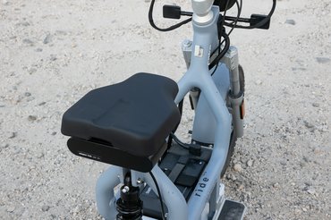Az üléspozíció olyan, amilyennek a képekről látszik, kissé babettás, nagymamás, de én alapvetően szeretek így ülni a robogón, nem kell nyújtózkodni a kormányért, egészen egyenes a hát, szinte derékszögben állnak a térdeim, egyedül a fenékre megy kissé nagy terhelés, amit egy kemény nyereggel tetéztek, nekem egy félórás út végére már érezhetően megterhelte az ülőgumóimat, nyilván ehhez is lesz majd puhább, kényelmesebb ülés, extra pénzért.