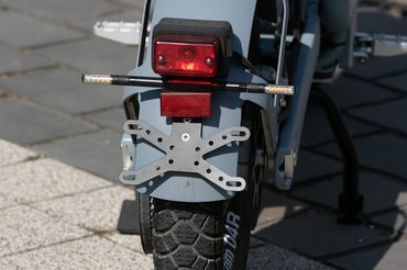 Persze nemcsak a hatóság, de a lóerők hiánya is befolyásolja a sebességet, sík úton fixen rá lehet akasztani a 45-re, lejtőn elengedi 49-50-ig, egy komolyabb emelkedőn viszont teljesen feltöltött akkuval is visszalassul akár 30-ig, de a legmeredekebb emelkedőn is felmegy, a Kiscelli-próbát tudja. Ha merül az akku, csökken a teljesítmény, de sík úton ezt csak a gyengébb gyorsulásból fogjuk megérezni. Két motormód van, a Ride 1 az erősebb, a Ride 2 pedig 25 km/h-ra korlátozott végsebességgel a nagyobb hatótávért, és akár bicikliúton való közlekedéshez. A fékek működtetésével párhuzamosan van visszatöltés a motoron keresztül is.