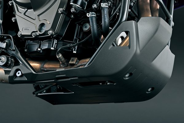Az acélváz is teljesen friss fejlesztés, a fordított első villa 220 milliméteres rugóutat tud, hátra egy enyhén ívelt lengőkar került, központi rugóstaggal, szintén 220 milliméteres rugózással. Az első kerék 21, a hátsó 17 colos. Szériafelszereltségnek számítanak a kézvédők és a műanyag motorvédő burkolat is.