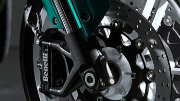 A futóművet illetően az alu lengővilla is új, eltér a többi 500-as Benellin látottaktól, a amúgy a hátsó futómű állítható előfeszítést és húzófokozati csillapítást is kínál. Elöl vaskos, 50 milliméteres fordított villát találunk. A 17-es felnik közül az első 120/70-es, a hátsó 160/60-as gumit kapott. Bár az európai modellek fékei eddig Brembók voltak, most simán csak Benelli felirat szerepel a nyergeken. Előre amúgy két 320-as tárcsa került, hátra egy 260-as. A menetkész tömeg 199 kiló, az ülésmagasság 784 milliméter.