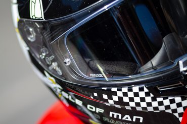Mikor megláttam a Man TT-s grafikát, egyből tudtam, hogy nem kell tovább keresnem. Egyszerűen nekem találták ki. Mivel a piros és a fekete színek mellett elég sok fehéret is festettek rá, így nem üt el a piros-fehér motoromtól, főleg úgy, hogy a bőrruhám fekete. De nem is a színek miatt választottam. Elöl a kockás zászló, kétoldalt a Man-szigeti címer, hátul pedig a pályarajz teszi igazán ütőssé. Illetve ami még legalább kettővel emeli a menőségi faktort, hogy hátul olyan, mintha a karbon héj csak lakkozva lenne. A valóságban közelről nézve látszik, hogy a karbonminta festve van, de akit ez zavar, nézze messzebbről.