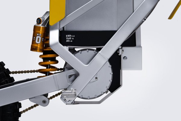 A Bukk természetesen szintén villanyhajtású, 16 kilowattos, azaz szűk 22 lóerőt tud, ami nem tűnik soknak, viszont van mellé a gyáriak számításai szerint 450 newtonméter keréken. Lítium-ion akkuja 72 voltos feszültségű, kapacitása 2,9 kWh, ez állítólag úgy háromórányi terepezésre elegendő. Viszont cserélhető az aksi, így gyorsan folytathatjuk a mókát, ha van tartalék. A töltés 0-ról 80 százalékra egy óra negyven percet, 0-ról 100 százalékra két és fél órát vesz igénybe.