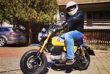 Mert míg a Honda Monkey egy picike, viszont minőségi és teljesen hagyományosan működő motor, addig ennek a Daxnak lelke van, beszélni kell a nyelvén, hogy normálisan tudj vele közlekedni. Nem úgy van az, hogy te csak úgy felpattansz és máris motorozol, érteni kell a gyakori pedálozást igénylő körváltóját, tisztában kell lenni azzal, hogy egy nem túl merev acélvázon ül, ami miatt kanyarokban nem túl stabil az eleve apró kerekein, lényegében semennyi ereje nincs, viszont a lényegből ez mit sem vesz el: tényleg bárki nagyon viccesen néz ki rajta, mellette.