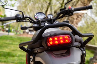 A futóműve persze puha, csakhogy itt egy 19-es első kerekű scramblerről beszélünk, ami kifejezetten arra csábított, hogy ne csak aszfalton próbálgassam. Egyszerűen megvolt a bizalom, ami mondjuk a Ducati Scramblerrel, vagy mondjuk a Benelli Leoncinóval egyáltalán nem kapott el. A nyeregből könnyű kiállni, az ABS csak mértékkel zavar bele a fékezésbe, aszfalton kívül a hátsót simán állóra lehet fékezni, csak néha-néha fordít bele egyet a kerékbe, tehát terepen sem nyújtja a végtelenségig a fékutat. Mindemellett a Scram 411 könnyű - nem úgy, mint egy egy terepmotor, hanem úgy, mint egy utcai motor, amivel le lehet tévedni az épített útról. 185 kiló szárazon, de feltöltve sem üti meg a két mázsát.