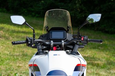 Látod? Próbálok kötekedni, csak nincs könnyű dolgom. A kényelembe és a motorblokkba nem tudok teljes szívvel beleállni, ezzel pedig dugába dőltek a prekoncepcióim. Kezdek kényelmetlenül fészkelődni, szívem szerint félretenném a munkát, csak úgy nettó önvédelemből. Szorul a hurok cikkírókám! Aztán végre eszembe jut valami, ami tényleg nem tetszett: a szélvédelem, ami nem állítható. Nem állítható! 2023-ban, egy túrázás felé hegyezett adventure motoron. Tudod min állítható a szélvédő? A Forza 350-en. Elektromosan. Nekem nincs ekkora igényem, szúrják ki a szemem valami rángatós megoldással. De hogy még szerszámmal sem szabhatom az igényemre? Az mi?