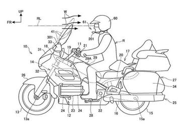 A Honda tervrajzai két megoldási sémából állnak össze. A jelen valóságunkhoz közelebb álló, hogy kiterjesztik az elektromos plexiállítás dimenzióját. Azaz egy gomb segítségével nem csak a plexi magasságán tudna állítani a motor vezetője, hanem a meredekségén is.
