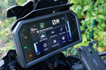 A GT+ felszereltség része a 7 colos színes kijelző, amin a szokásos menetmódokon és az alapinformációkon kívül akár Garmin navigációt is lehet futtatni, ha valaki előfizet rá: emiatt tuti nem dobnám ki rá a felárat, de az adaptív tempomat rendesen elgondolkodtatna. Akad a kijelzőhöz egy-két érdekes funkció. Ilyen például a váltásjelző, aminek az adja az érdekesség faktorát, hogy saját magadnak beállíthatod, milyen fordulaton szeretnél elváltani, és ennek megfelelően fog felvillanni.